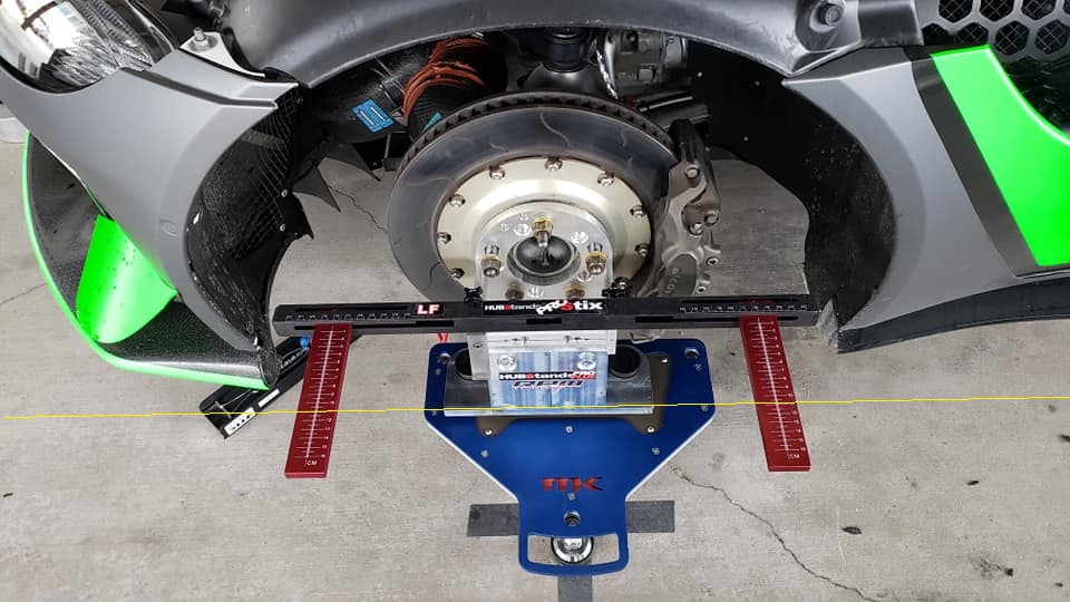 ProSTIX string alignment tools attach to HUBStands and allow easy string set up and precise toe measurements at all four hubs at the same time.