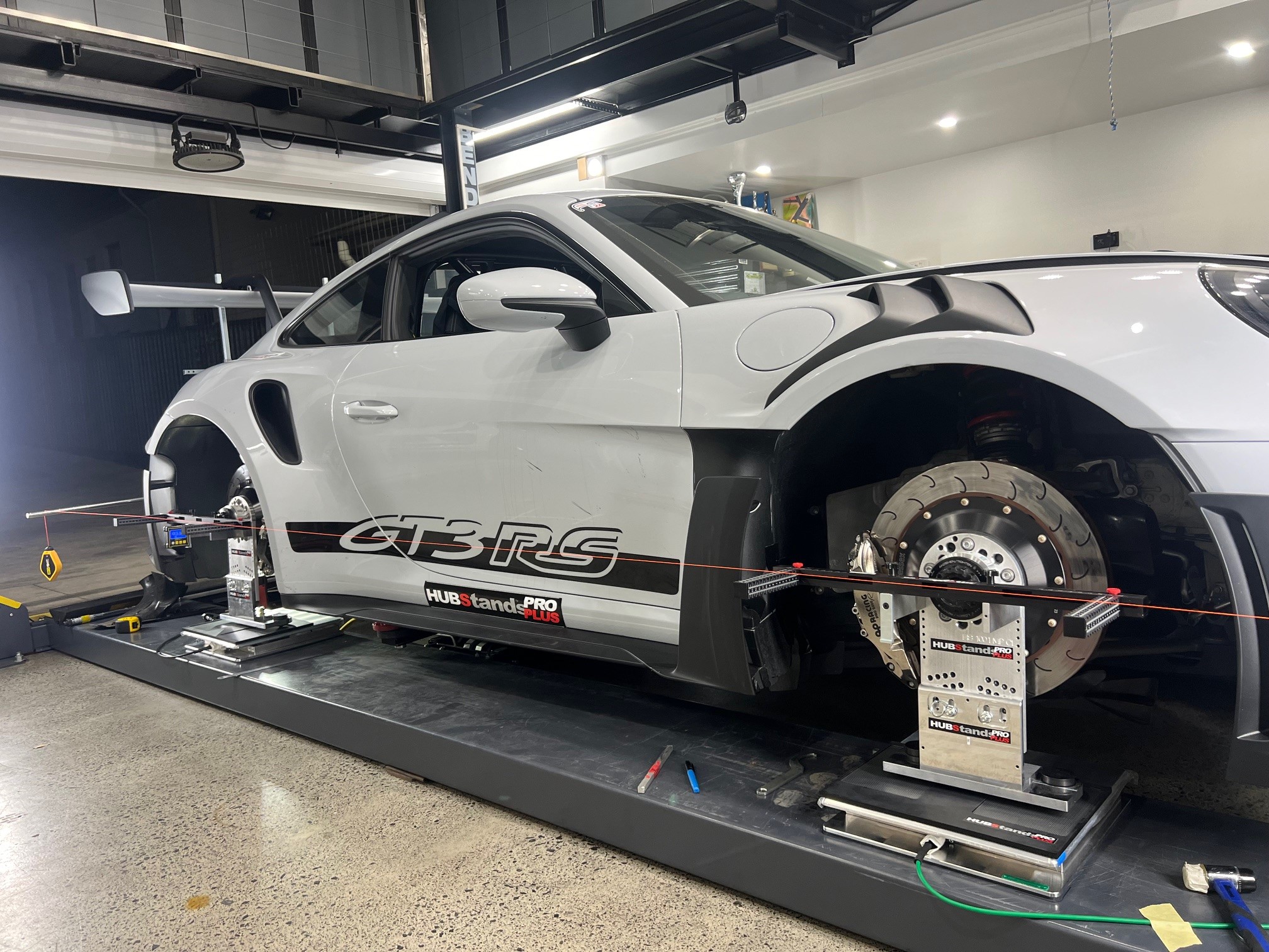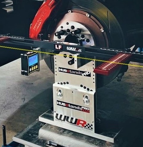 Developed with professional race teams in the IMSA and the SRO series, ProPLUS HUBStands brand of automotive set up stands have Omni-Directional Roller Ball Bases. They are fully suspension compliant and adjustable for Wheel Offsets, Scrub Radius, exact Tire diameters and Ride Heights. With ProPLUS HUBStands, you can get the most precise, accurate and repeatable set ups possible, with everything measured directly at the centerline of the hubs and the center of pressure in the car’s virtual contact patch.