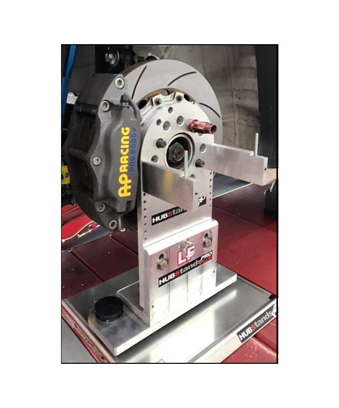 ProPLUS HUBStands are machined from 6061 aluminum and come complete as a set of four with exact height and scrub radius /offset adjustable roller ball bases, (4) interchangeable, multi-pattern Pro Hub Plates, stainless Toe Sticks, stub extensions and Acrylic/Composite Anti-Roll off Safety Plates.